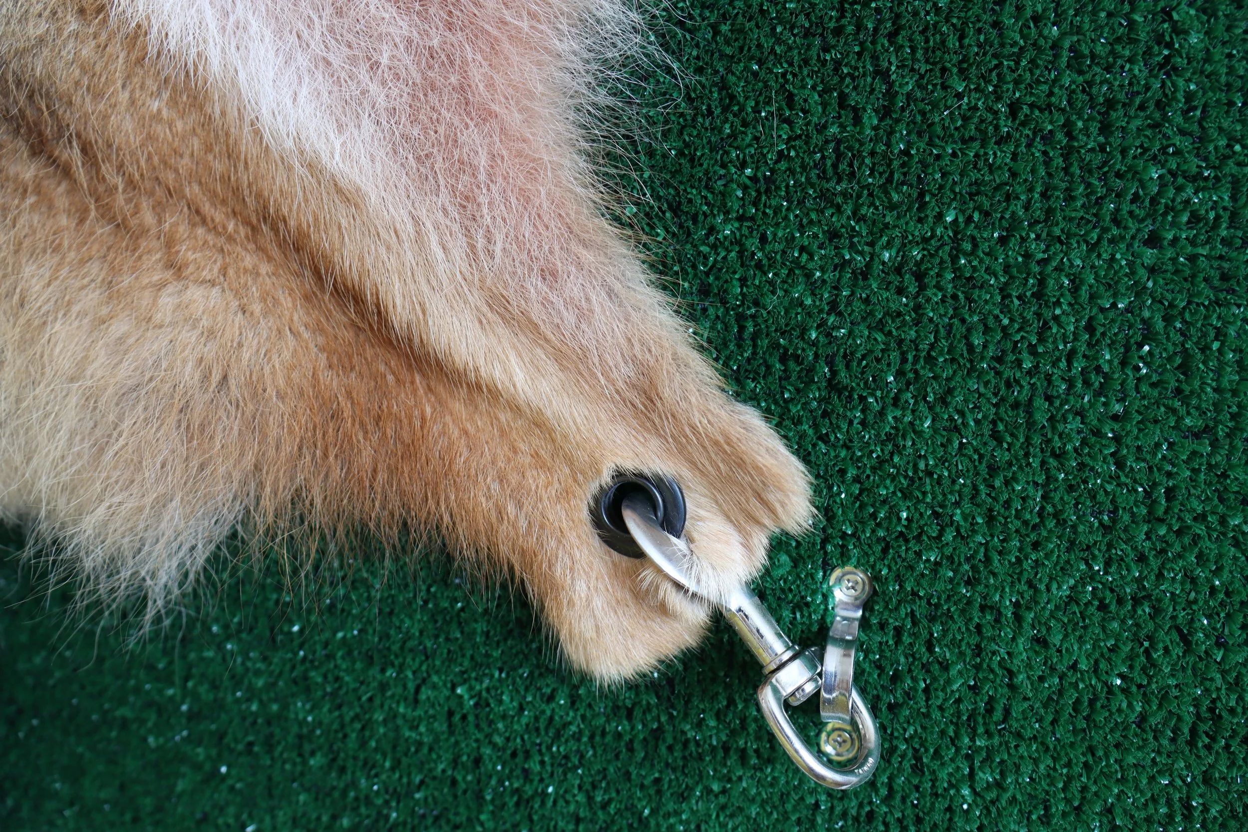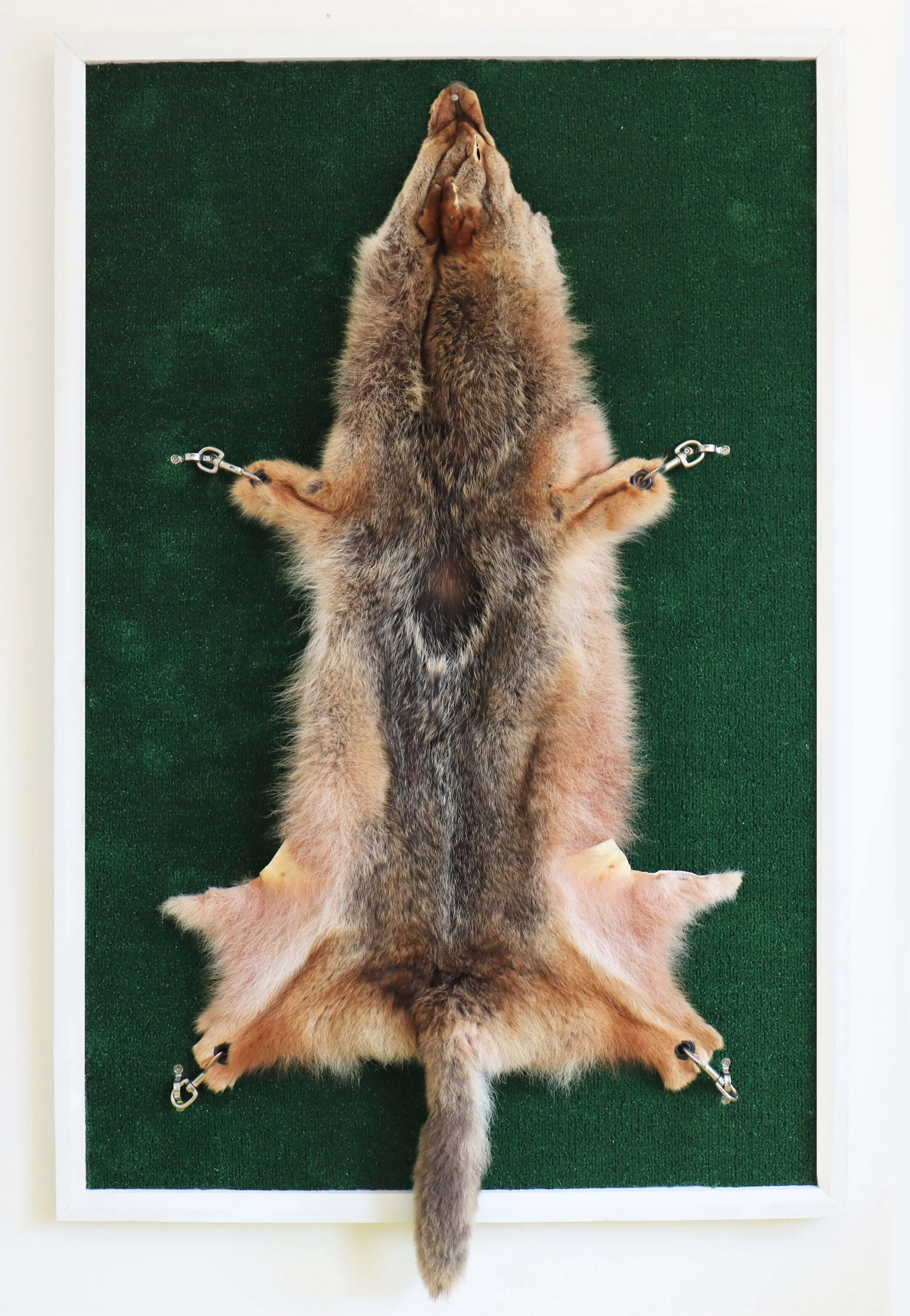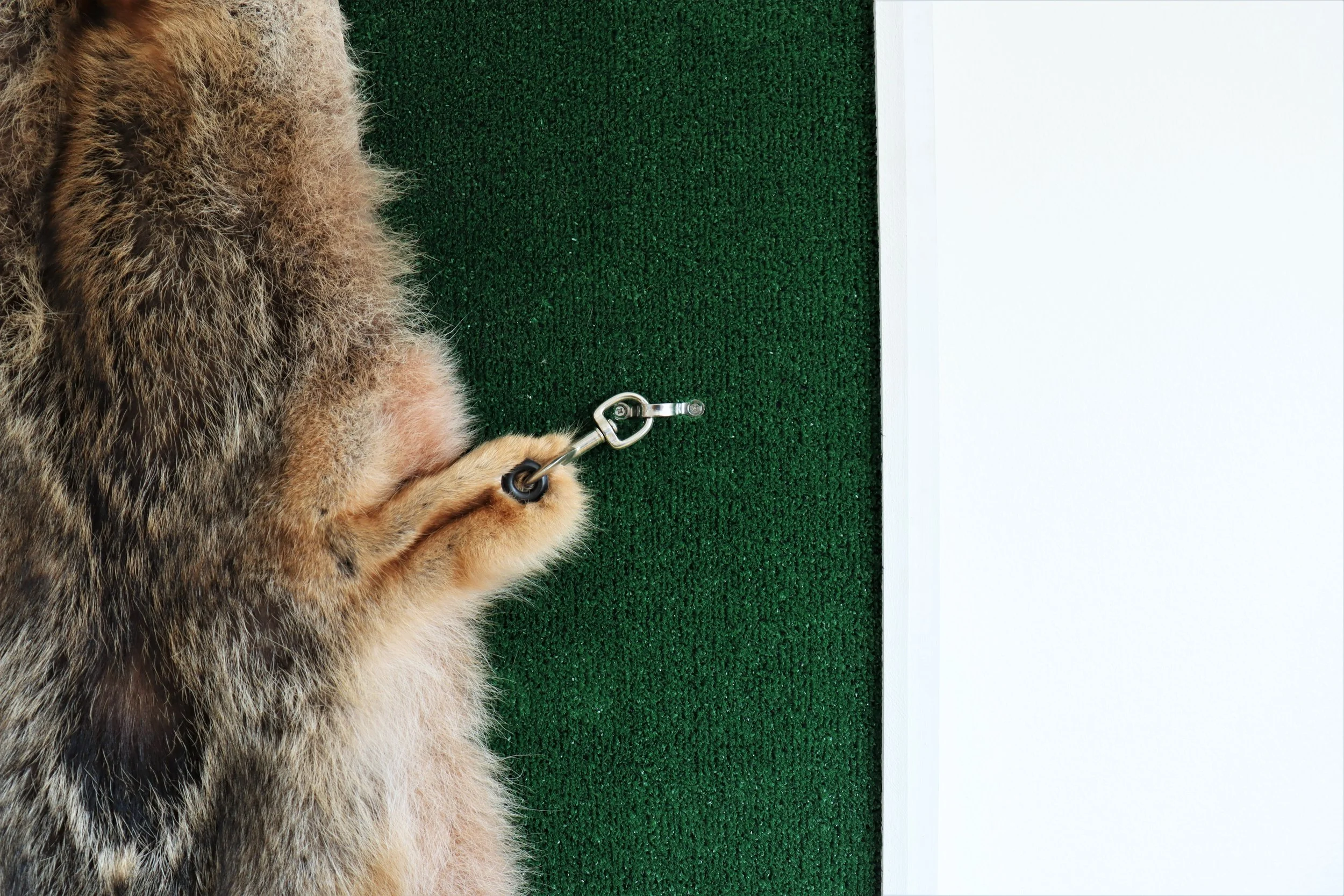 Coyote Pelt, AstroTurf, Leash Clips, Wood, Nail